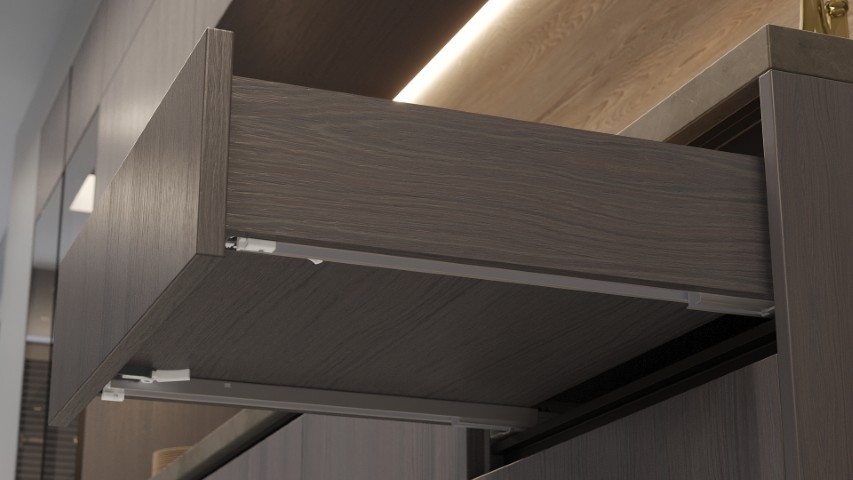 Sistema oculto para gavetas com abertura toque e fechamento suave